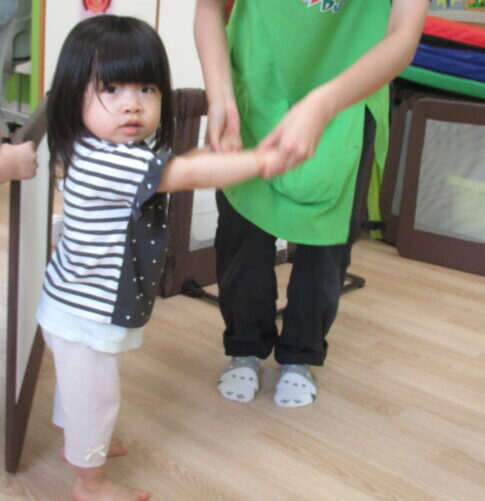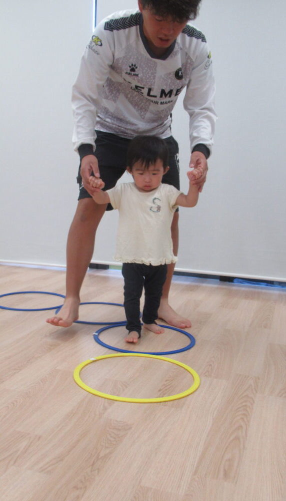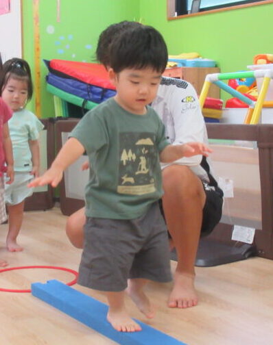 平均台を渡る(幅広・低め)→ ゆっくり歩くことに挑戦。