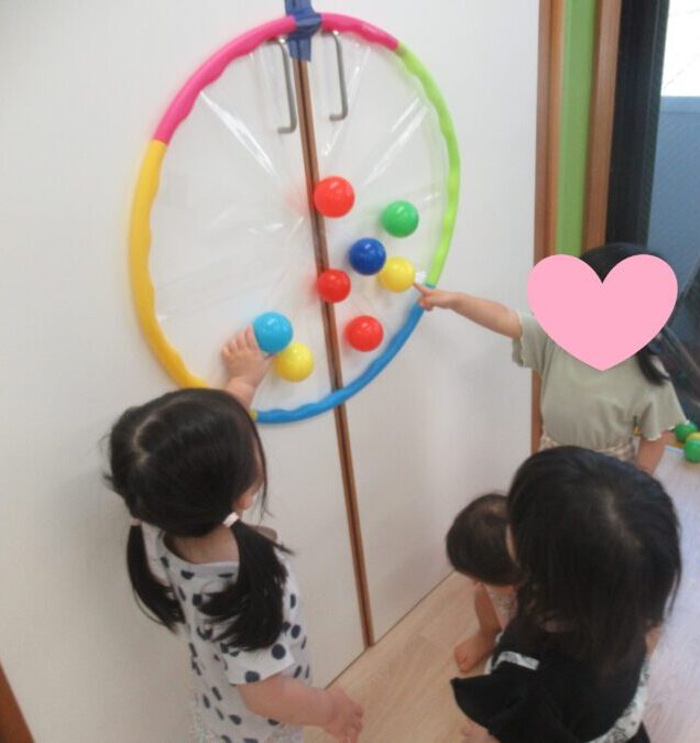 たくさん色のついたボールで遊ぶことで色の認識にも繋がります。