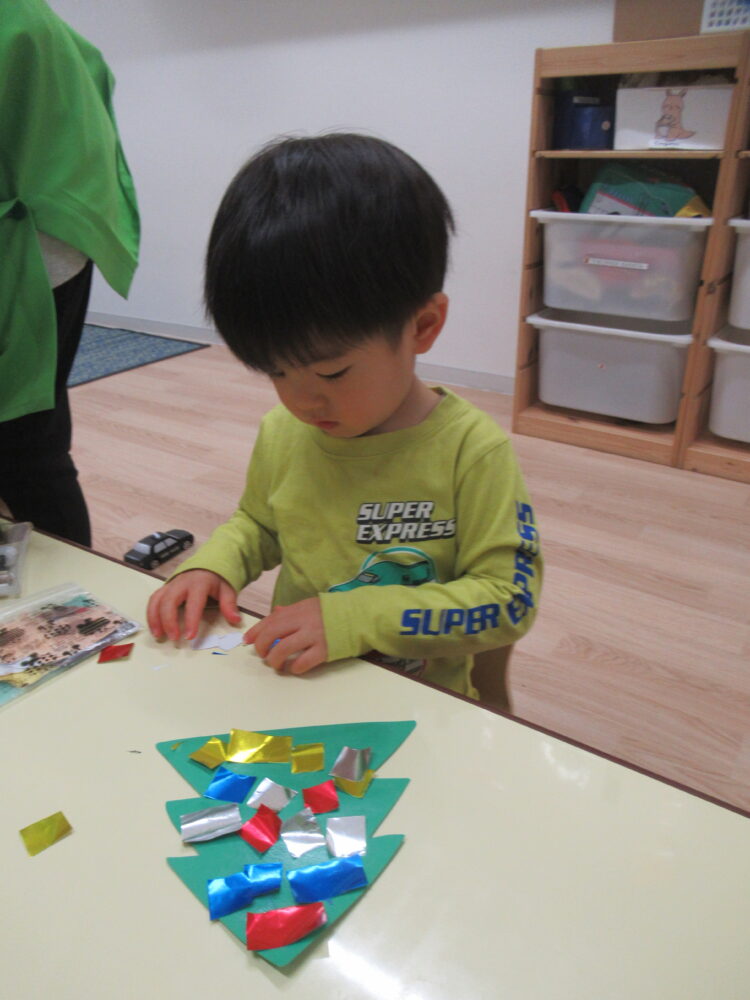 ハサミでちょっきん!一回切りをした後、のりでペタペタ貼りました。