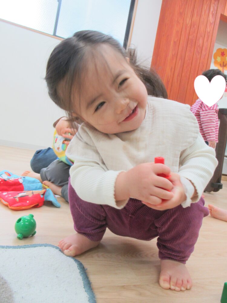 おもちゃを持ったり転がしたり「どうぞ~!」する姿もみられました。