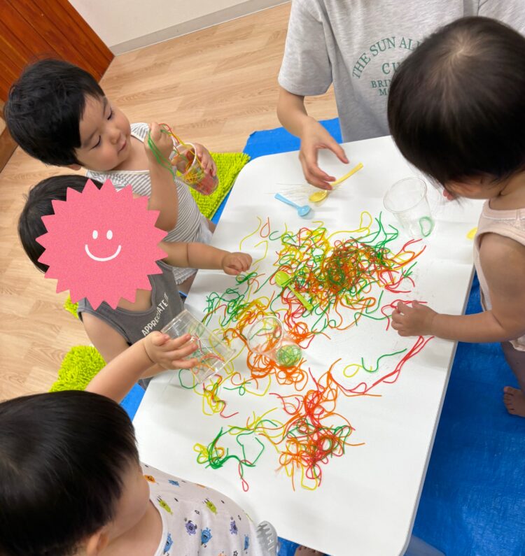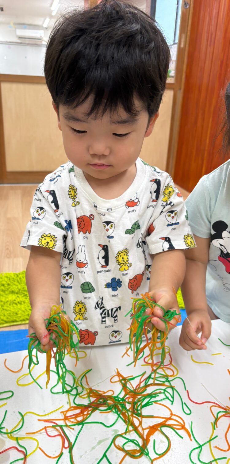 いつもの鮮やかな春雨を触って感触を楽しみました☺️