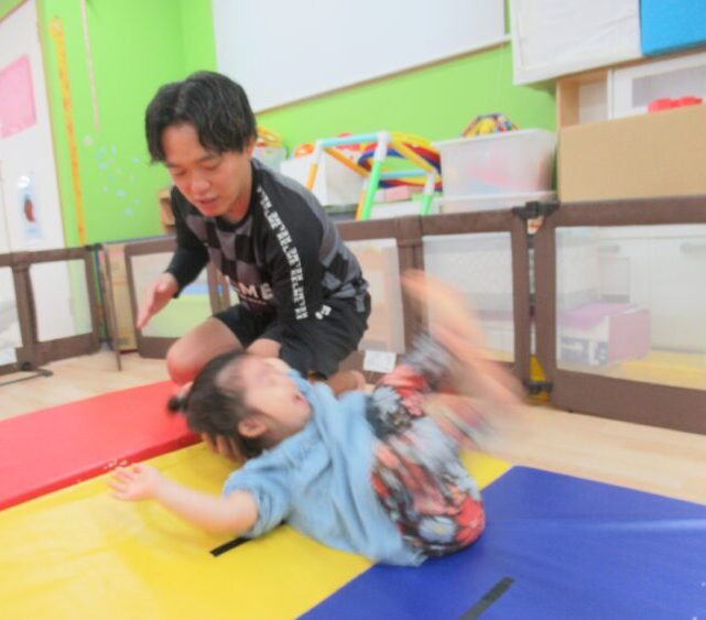 マットの隅から隅までずれないようにゴロゴロしようね。