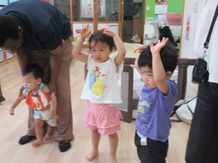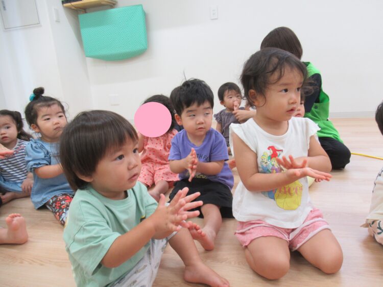 ピアノの音にあわせて、頭ツンツン♬膝ドンドン♬を楽しく行っています☺