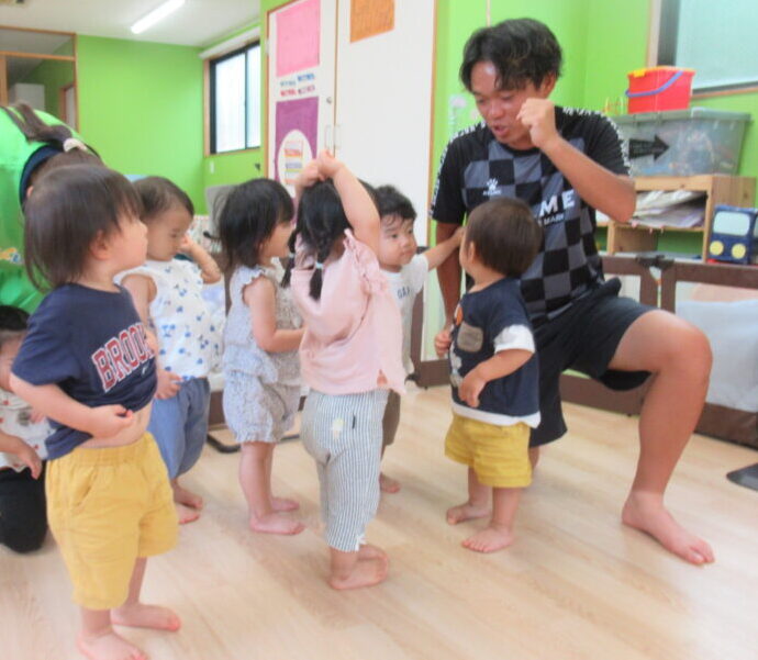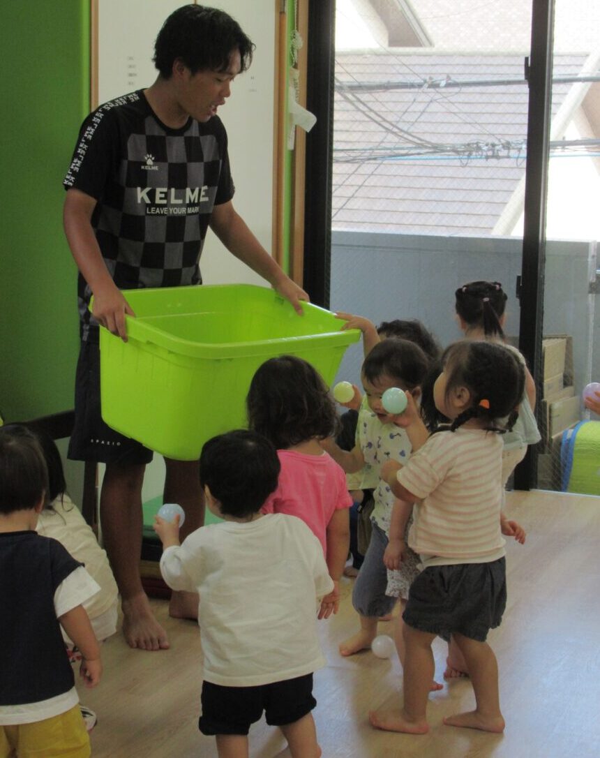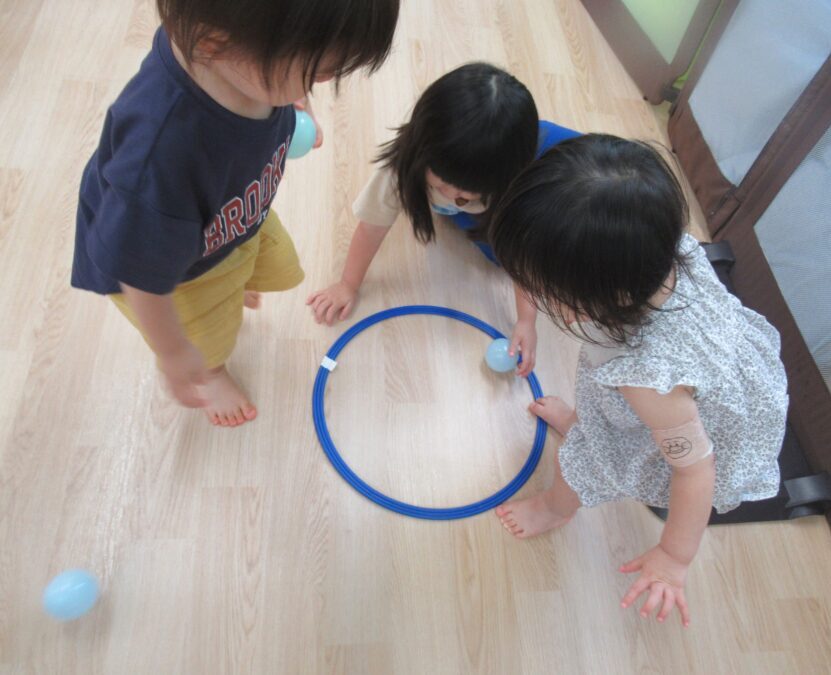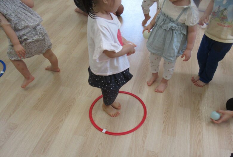 今日は、身体を動かすだけではなく、運動を通して色の認識なども行いました。