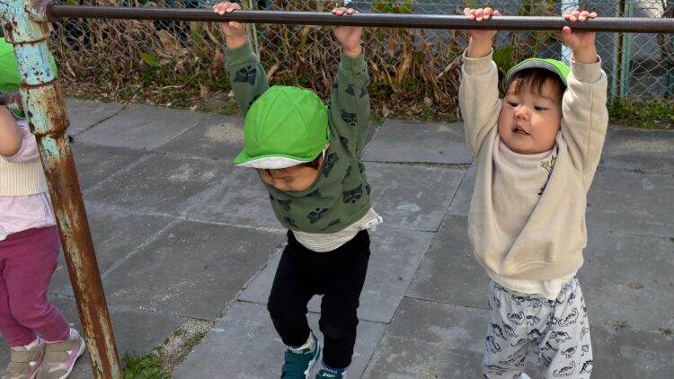 鉄棒で遊んだり、広場で「よーいドン」を楽しんだよ☺️