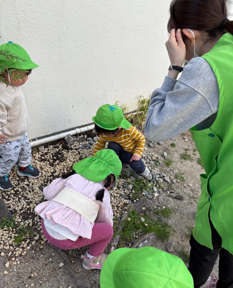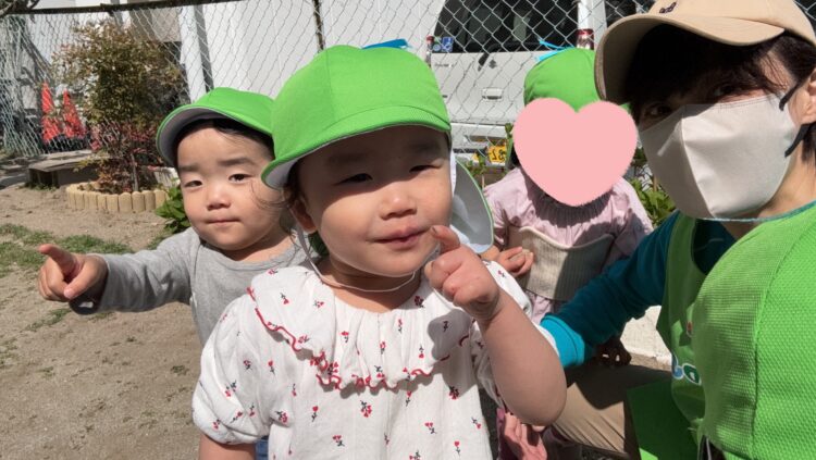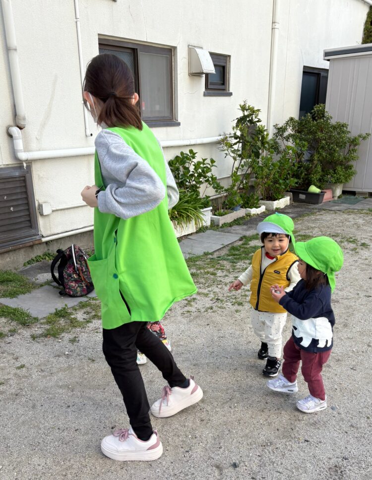散歩中は、子ども同士で手を繋いだり列になって歩くことを学んでいきます。
