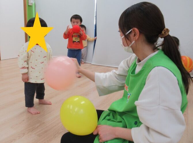 風船遊びを通して友だちや保育者と一緒に遊ぶ楽しさを感じます![]()