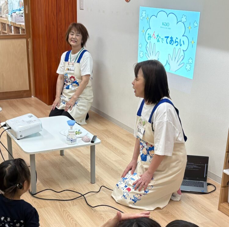 花王さんに来ていただき、手洗いのやり方を教えていただきました![]()