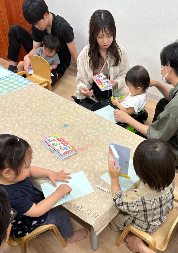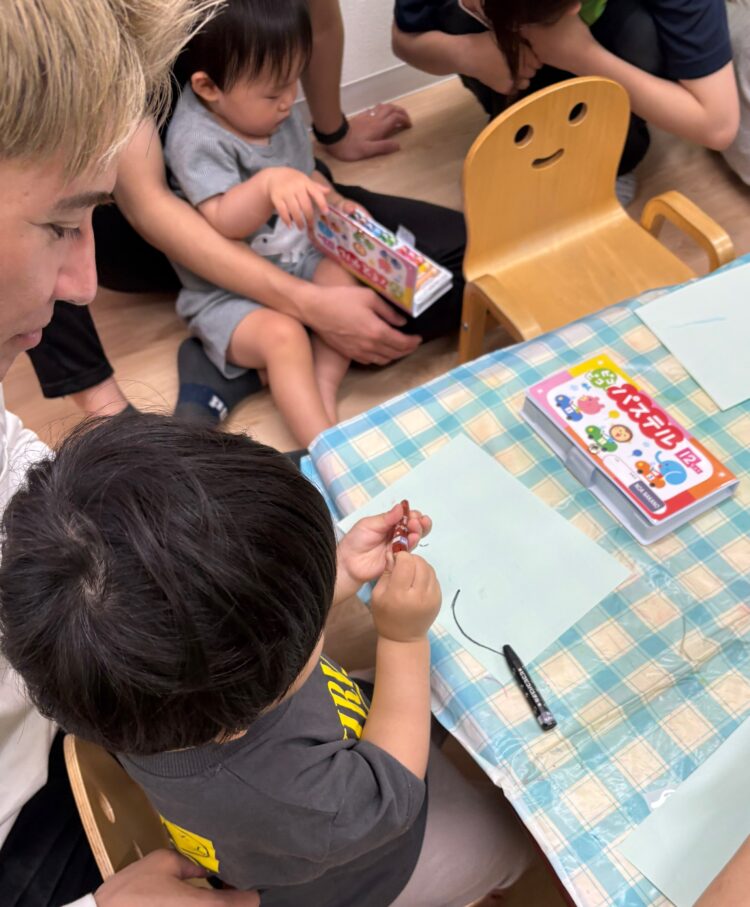 パパとママ一緒にクレヨンを使ってカキカキしました![]()