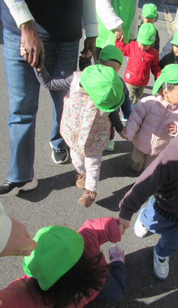 また、階段の上り下りの練習にも挑戦しました。保育者と手をつなぎながら、一段ずつ慎重に足を運び、できたときにはとても嬉しそうな表情を見せていました。