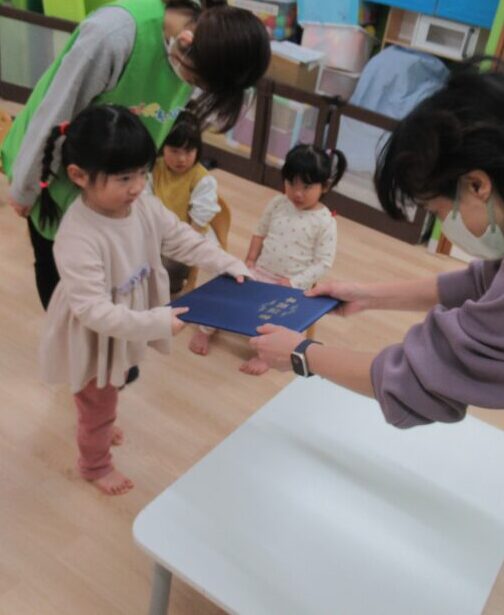 28日の卒園式に向けて初めて証書をもらう練習をしました![]()