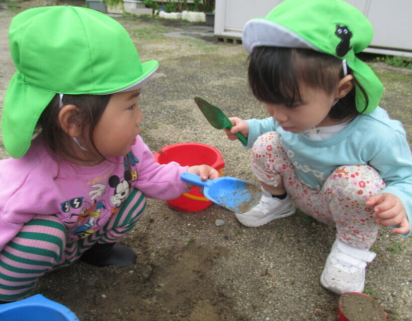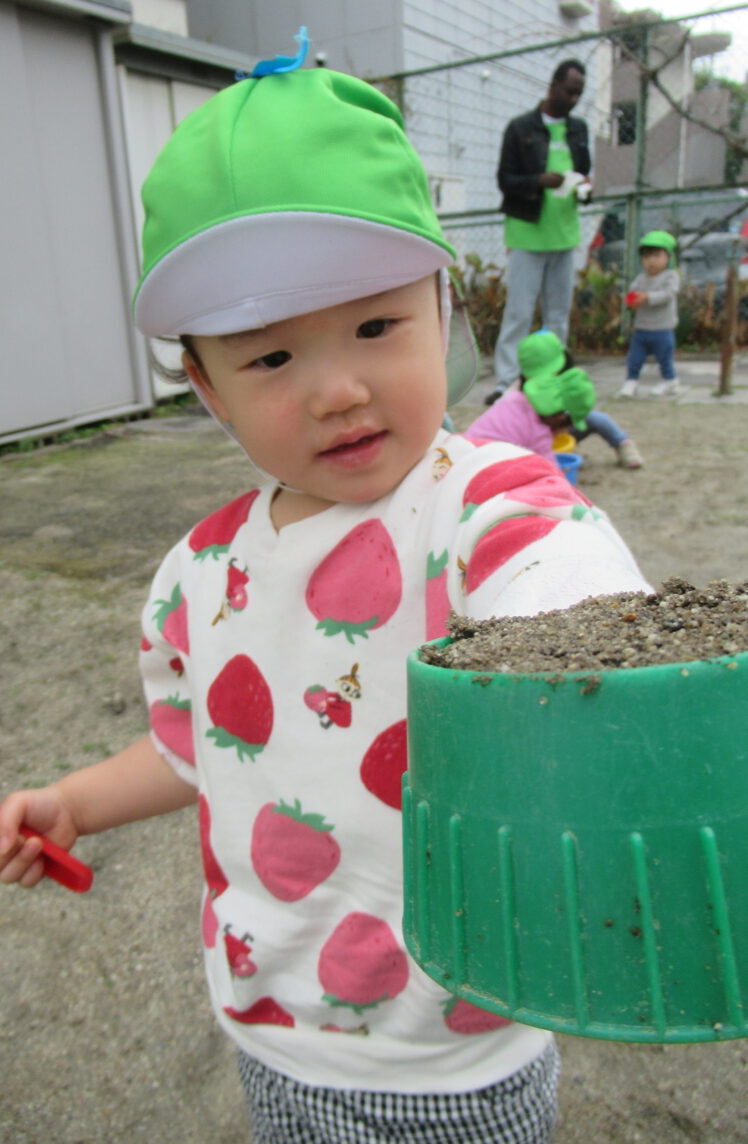 雨上がりの戸外遊びはいつもと違う感じです🪣