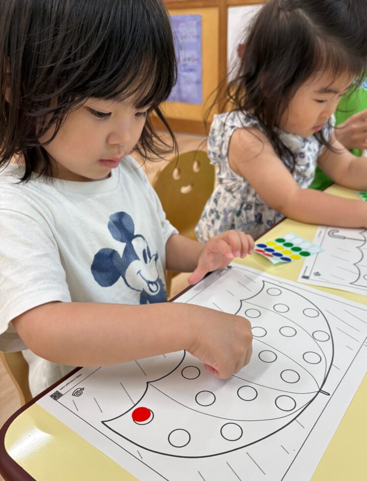 シール貼り遊びの目的は、指先の細かい運動能力を育み、集中力や創造力を高めること、また、色や形を認識する力を養うことです。