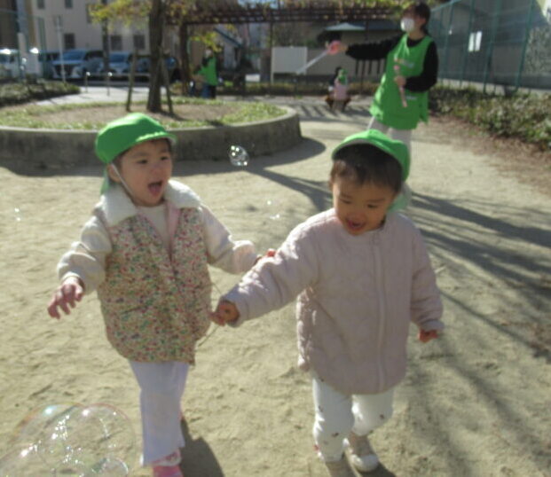 外の空気に触れたり、太陽の光を浴びたりすることは、心や体の発達にとても大切な経験です