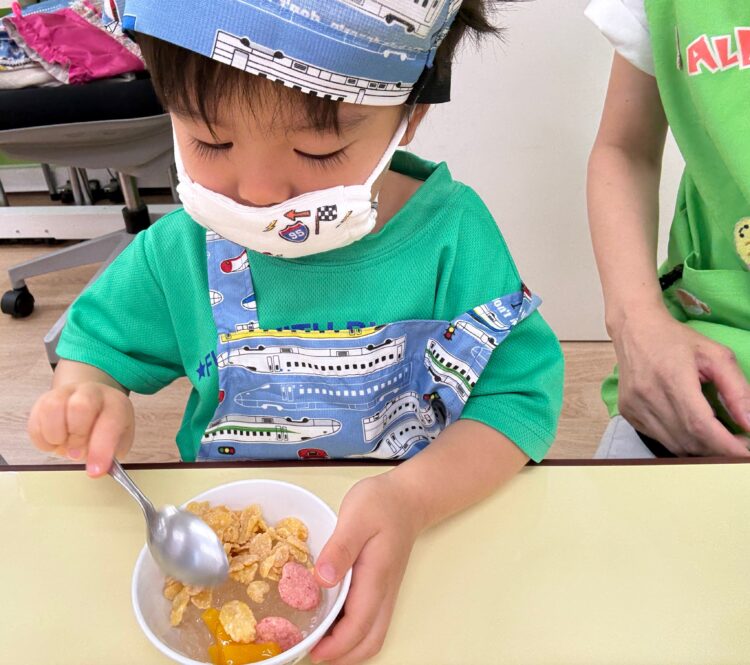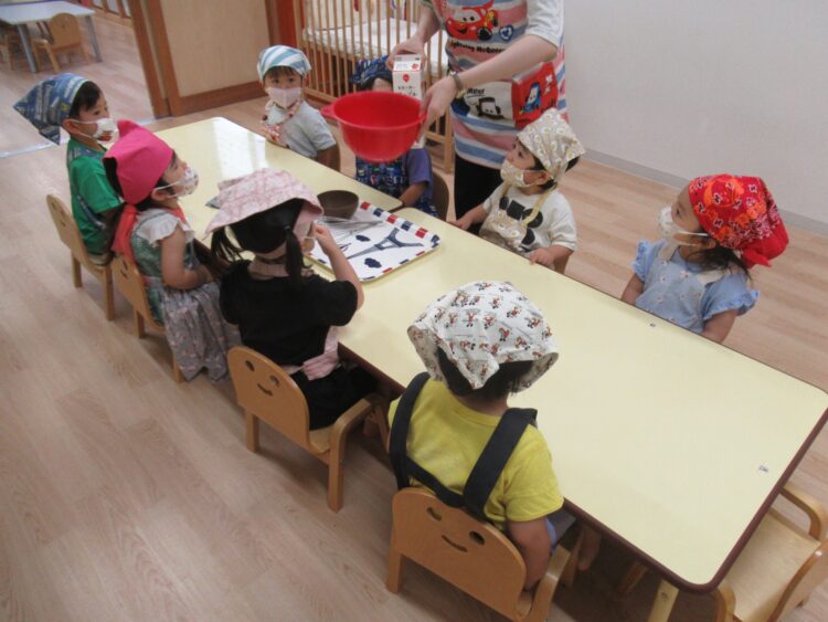 そら組さんはおままごとで遊んだ後、クッキングを行いました☺