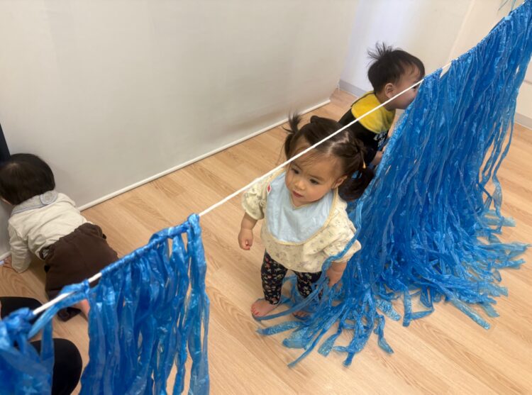 つかまり立ちが増えてきた0歳児クラスでは、身体を使った遊びや感覚遊びがとても大切です✨