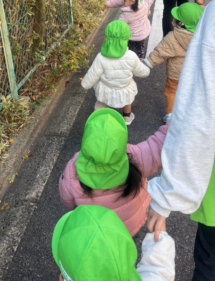 冬の寒さに負けず、元気いっぱいのお友達は「もっと歩きたい!」と、歩幅を広げて歩く子もいましたよ。