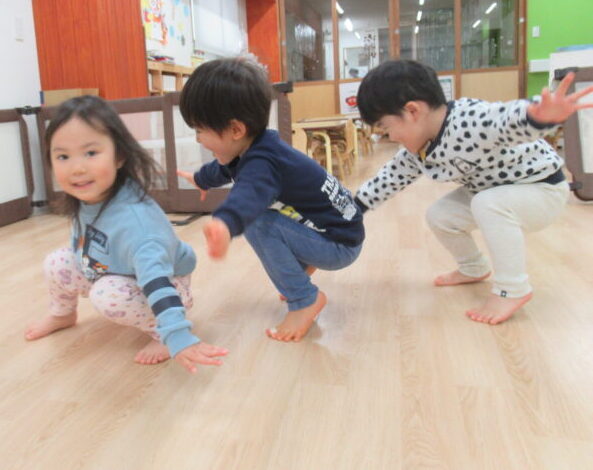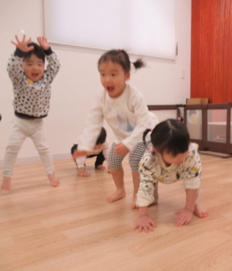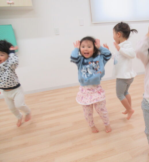 年明けで最初は少し戸惑っていた子も、だんだんと音に合わせて体を動かすことが楽しくなってきた様子。