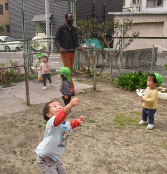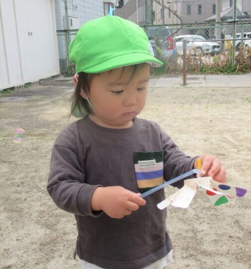 シャボン玉を追いかけたり、触ってみたり面白いね🫧