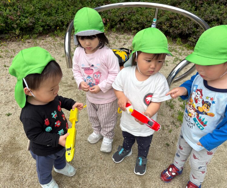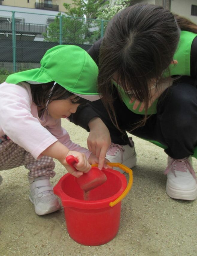 砂遊びを通して身近な自然に触れ砂の感触を楽しんでいます