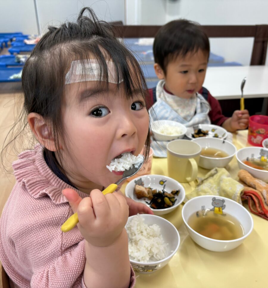 先生と一緒だと会話も弾み、大きなお口で食べていましたよ🍚