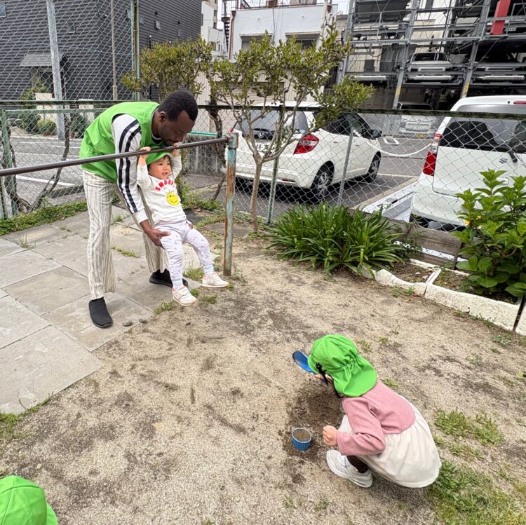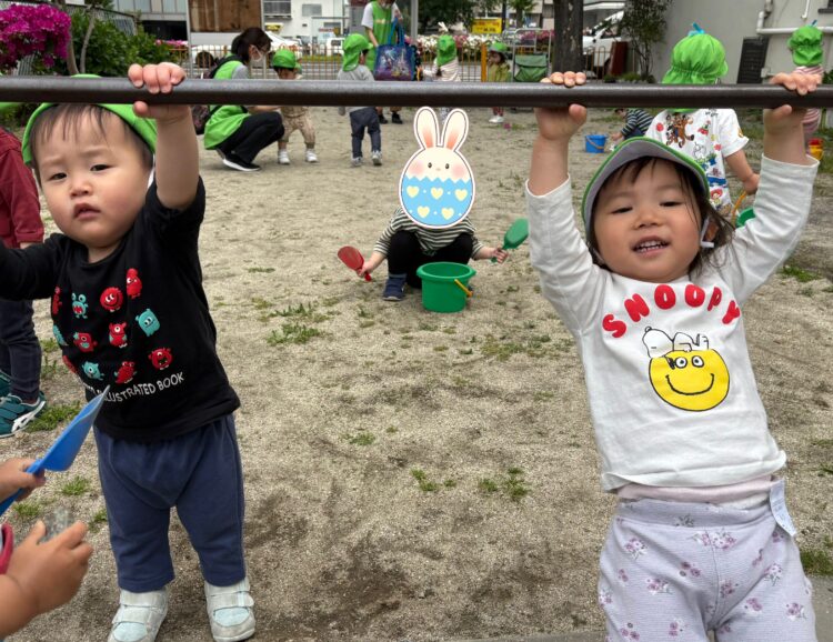 鉄棒遊びやシャボン玉、かけっこをしたりと各自好きな遊びを楽しみました