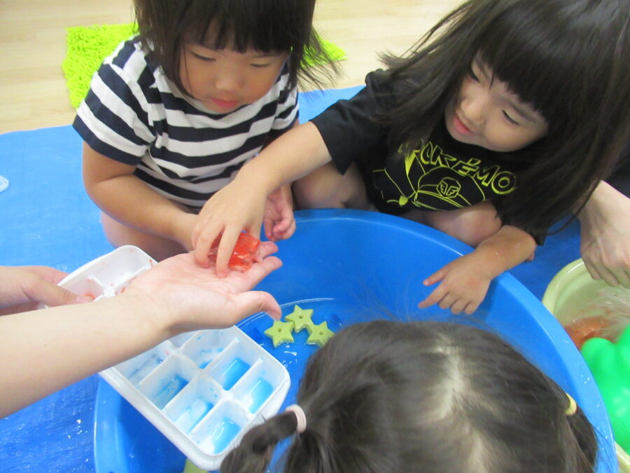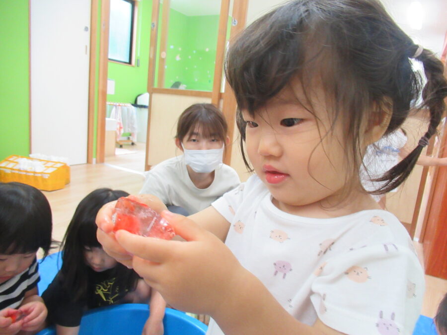 氷に触った感覚や解ける様子を楽しんだよ。
