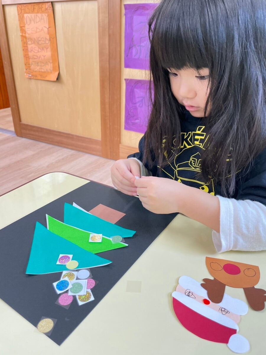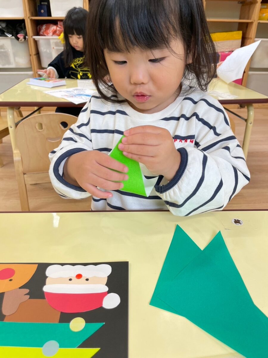 先生から説明を聞いて、上手に折り紙折れているね🎄