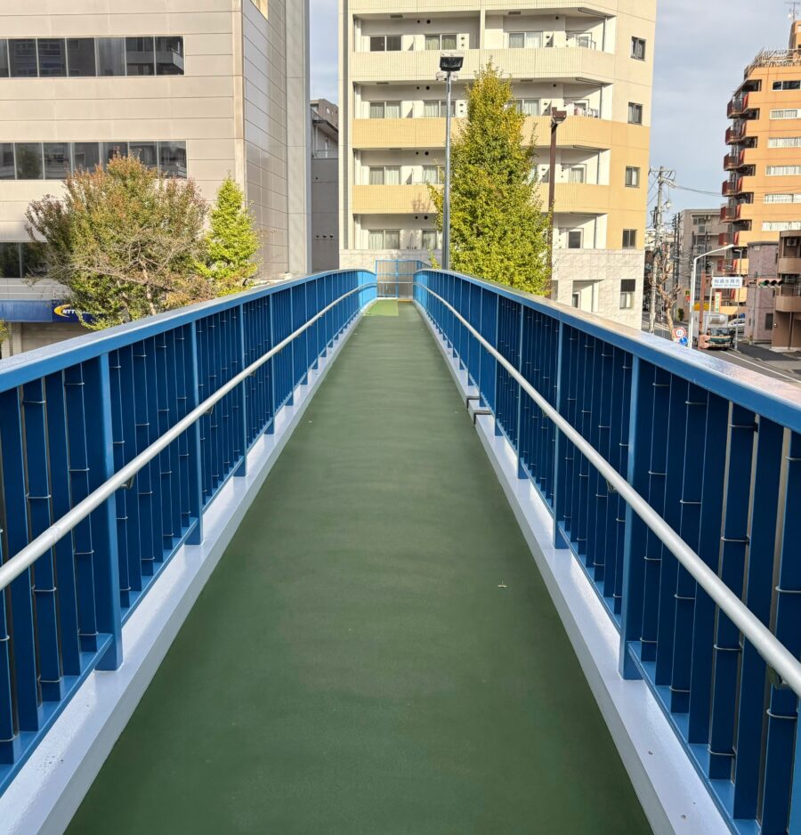 今日は、歩道橋を使って道路を渡りました。
