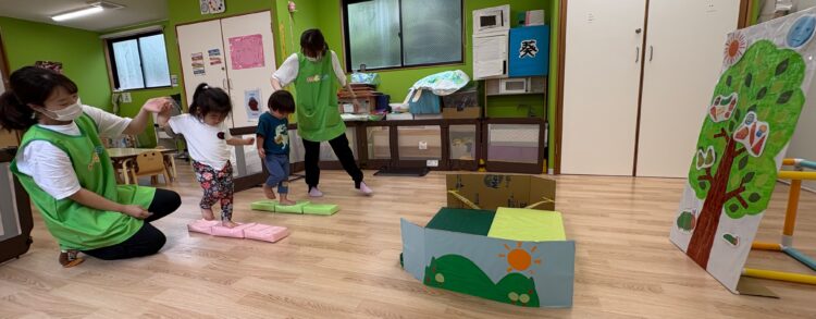 今日は親子障害物競争「おなかいっぱいにさせてね」の練習風景をご紹介します![]()
