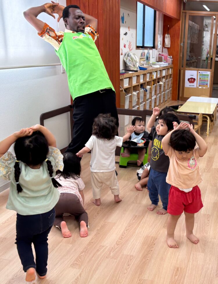 チカ先生も一緒に体操しています