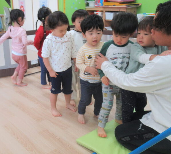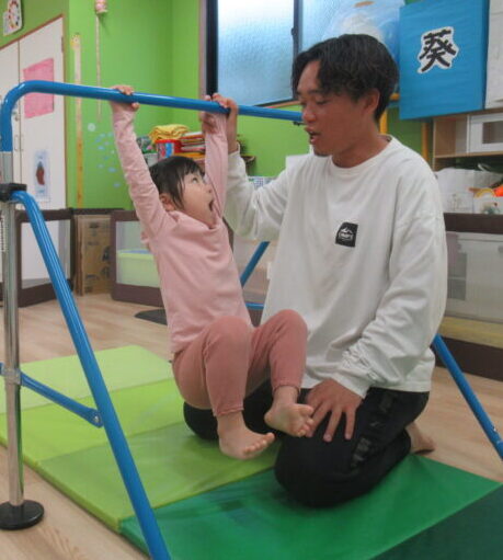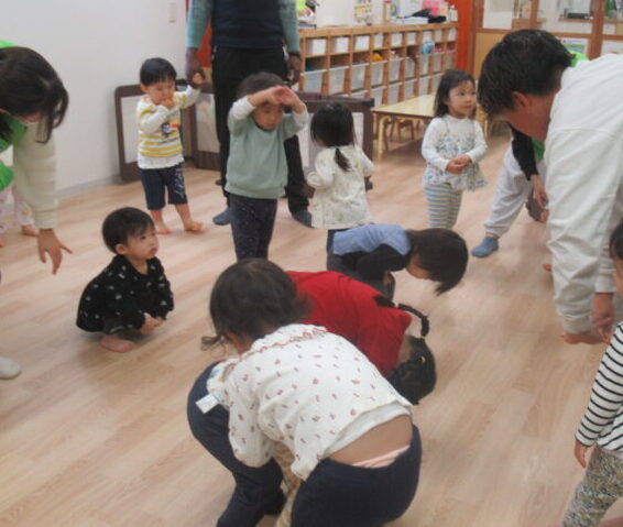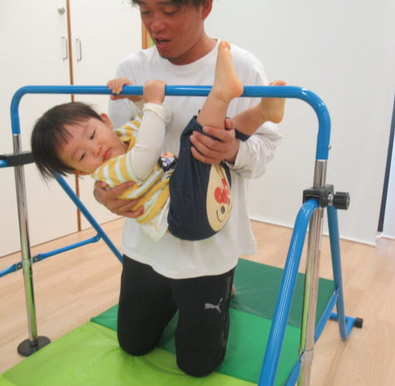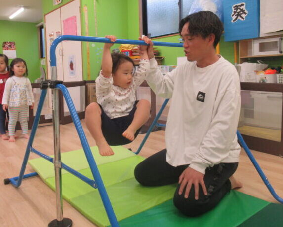 「さるさんみたい~!」と腕の力でしっかり体を支える姿も見られました。