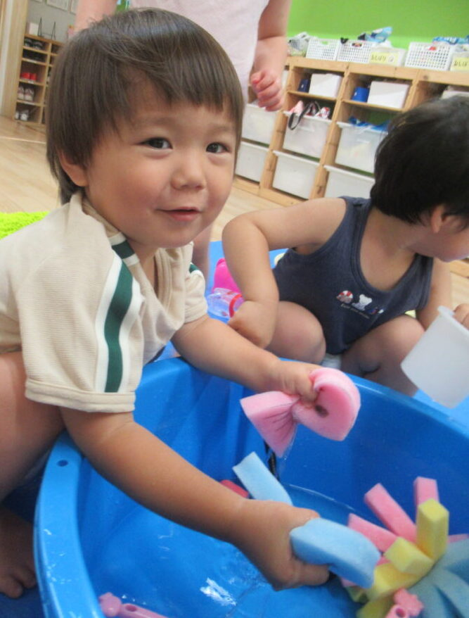 スポンジを使って遊ぶよーー