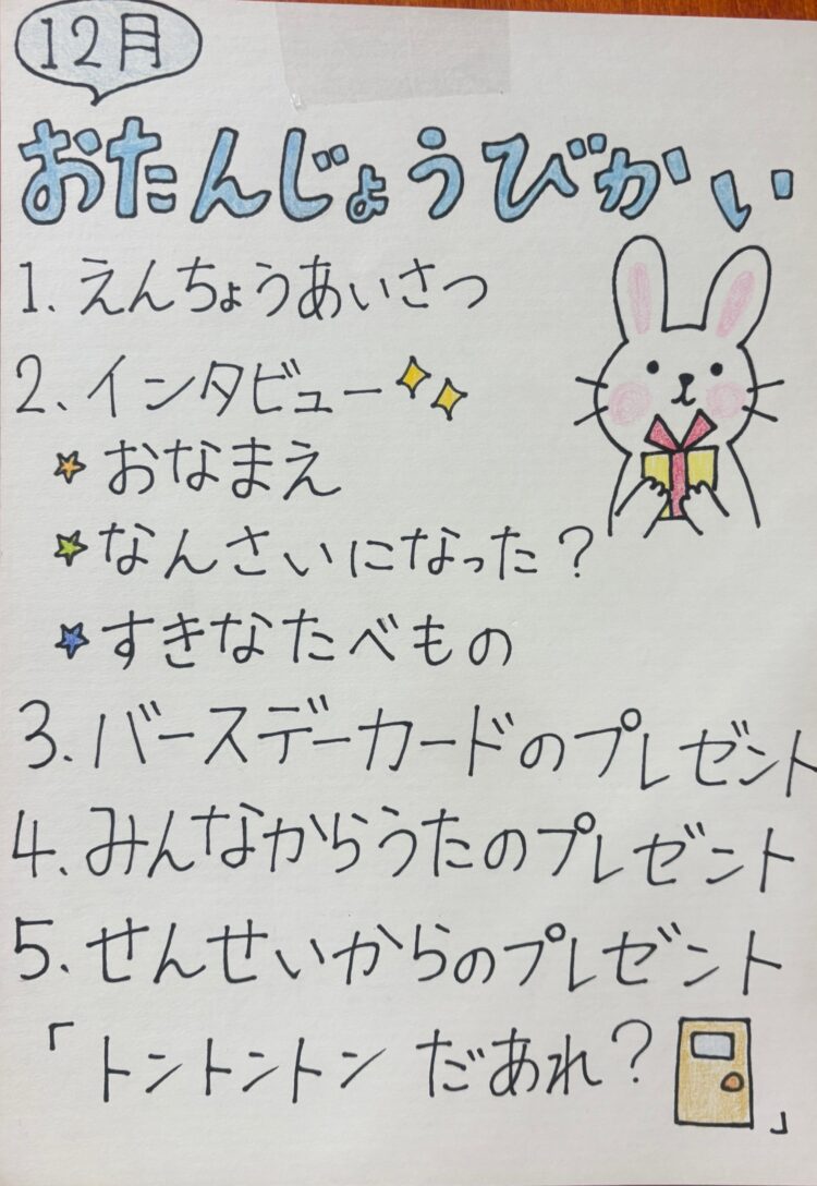 12月生まれのお友だち、お誕生日おめでとうございます🎉