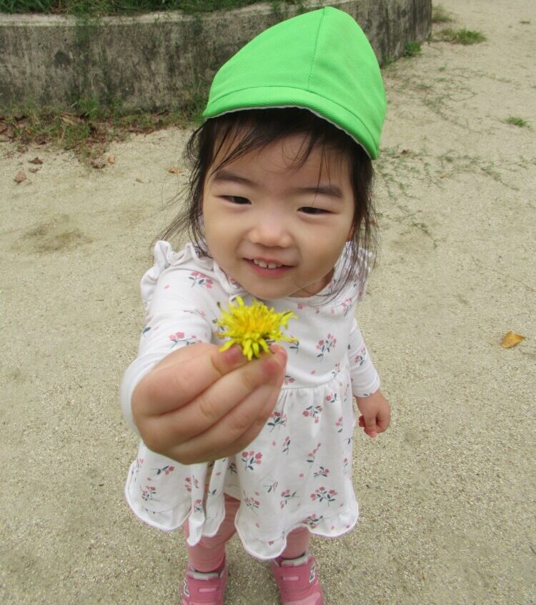 たんぽぽを見つけて「みてみて〜!」と嬉しそうに見せてくれたり…。