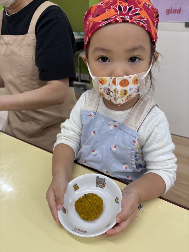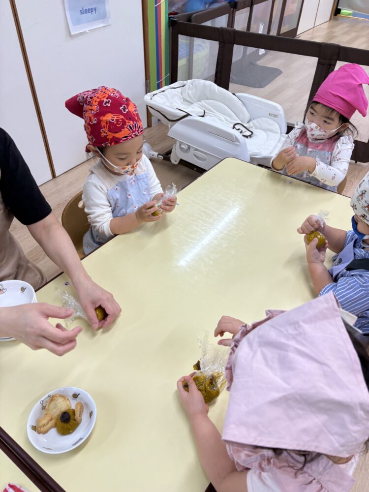 最後に自分で作ったパンプキンとんをおやつでいただきました![]()