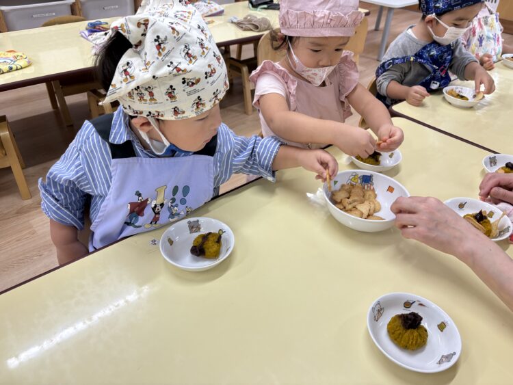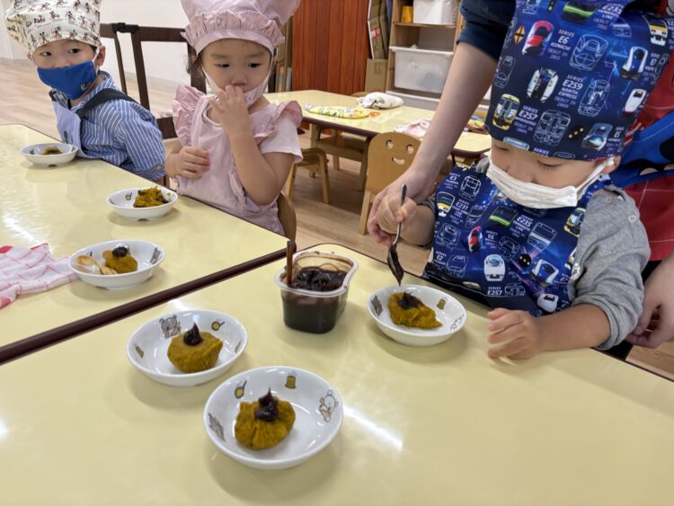 秋の味覚「かぼちゃ」を使って、かわいいパンプキンとん作りにチャレンジ![]()