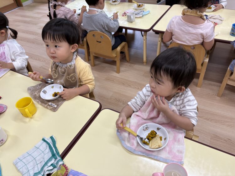 「かして」「どうぞ」のやりとりも少しずつ見られ、成長を感じる毎日です。