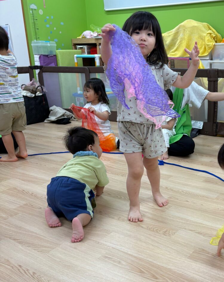 お水に見立てたリトミックスカーフを選ぶよ![]()