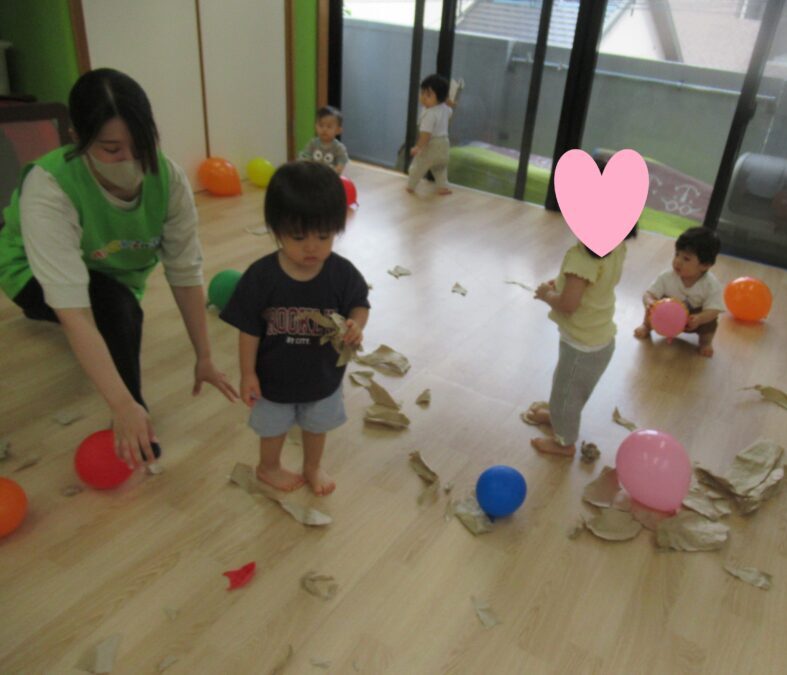 風船や紙をビリビリして遊んだよ😊