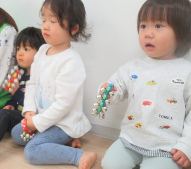 そのあとは、楽器を手に取って「たきび」のうたに合わせて演奏![]()