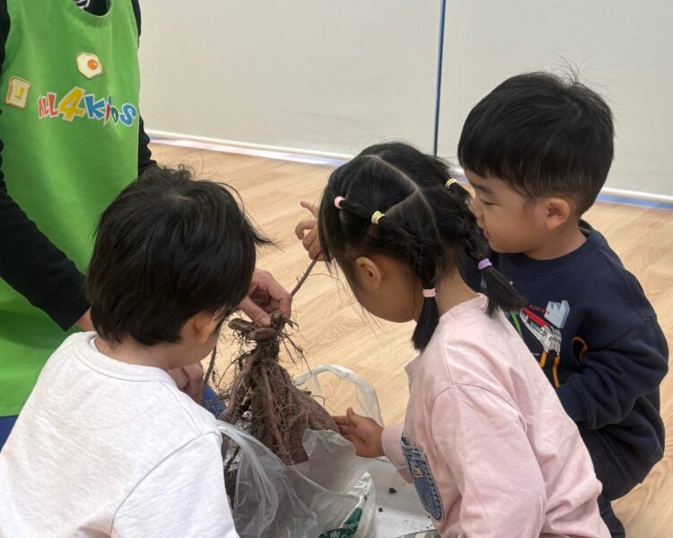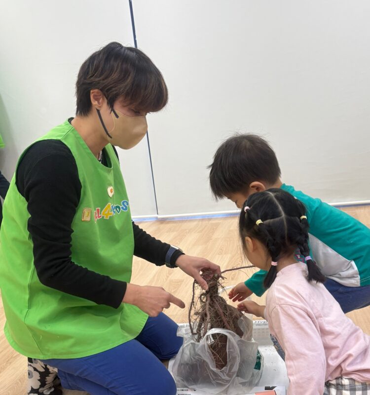 土をほって、「うんとこしょ、どっこいしょ!」と引っぱったら、なが〜いお芋が出てきてビックリ