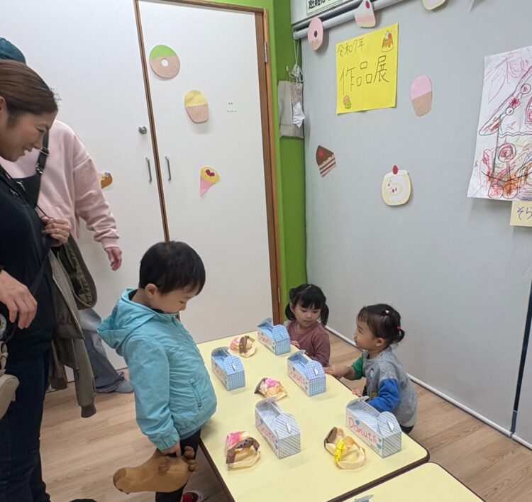 自分の作品を見つけて嬉しそうに教えてくれる姿も見られ、子どもたちの成長を感じていただける展示となっています。