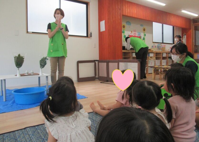 今夏、水遊びをするにあたって水の神様に葵園のお友だちが、怪我や病気、事故をしないよう安全に活動出来よう願いを込めました。
