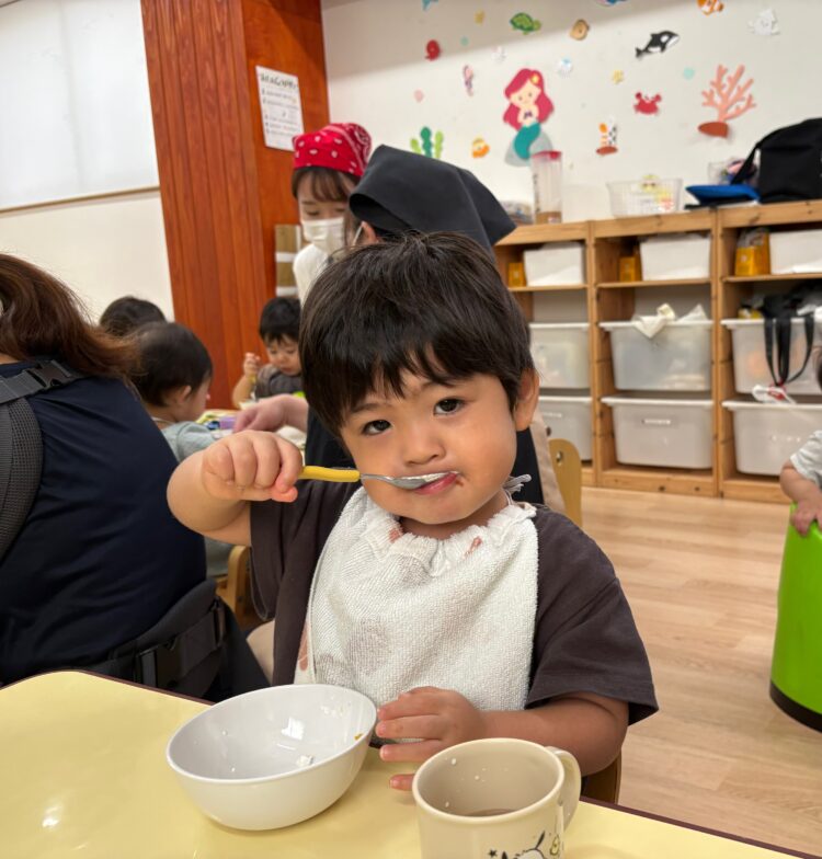 バケタくんが一口食べるたびに