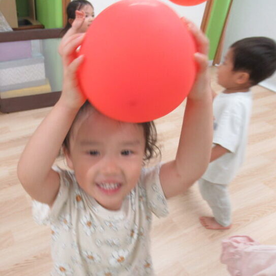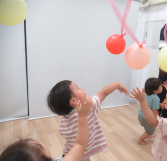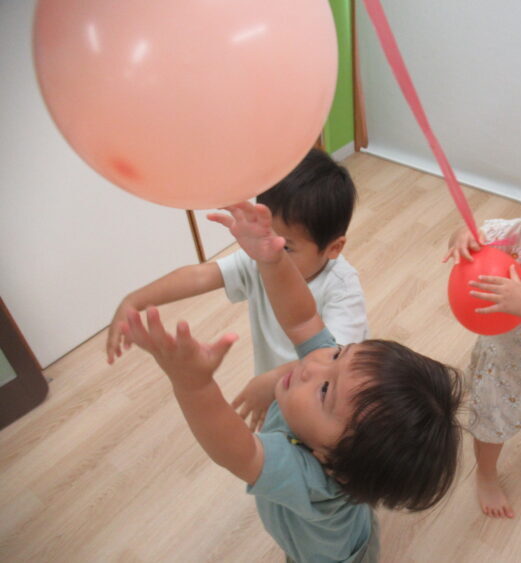 室内で🎈風船遊びを行いました。
