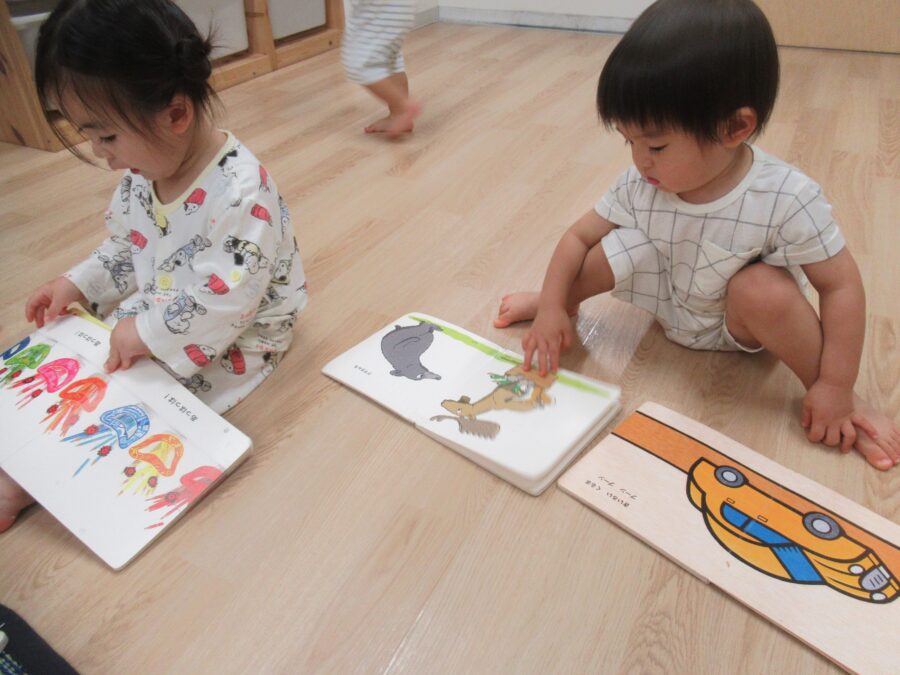午睡前の絵本の時間です。