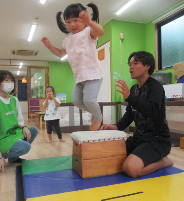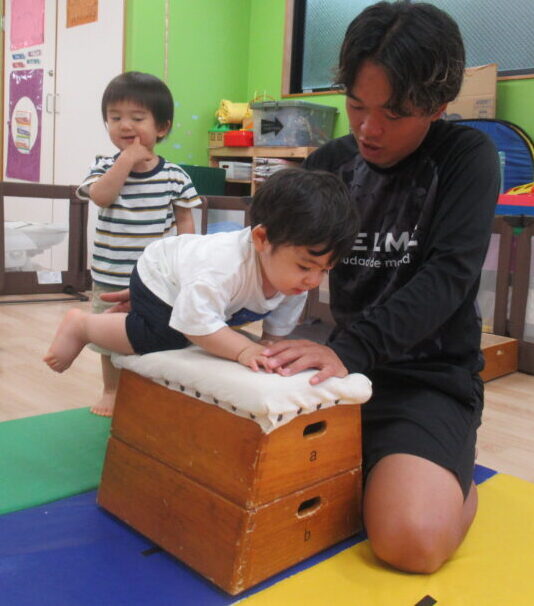 跳び箱を使った運動は、柔軟性や瞬発力、バランスといった身体能力の向上が期待出来ます。跳び箱運動遊びを通して、楽しくこうした「力」を身に着けていきたいと思います。