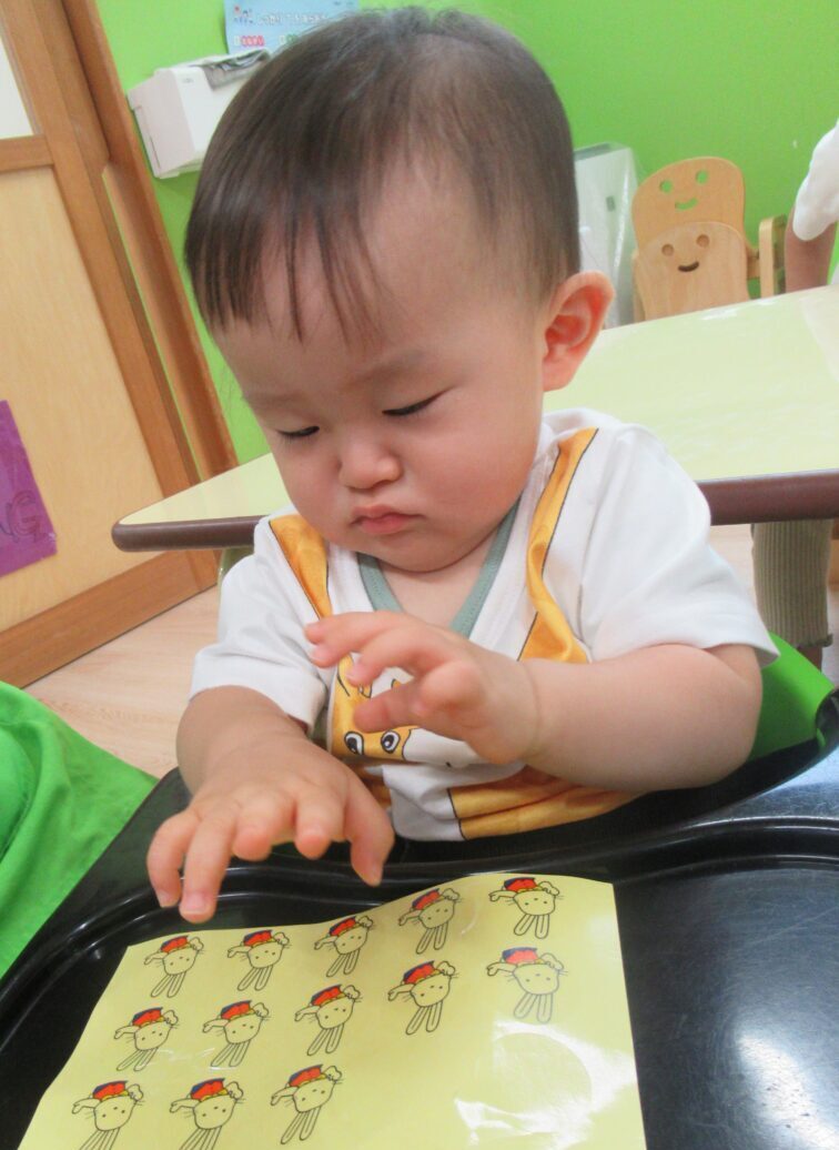 指を使って上手に剝がしてはペタペタと遊んでいます。