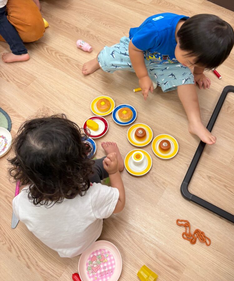 子どもたちの遊びに合わせて質問することで会話が広がり、想像力に繋がります![]()